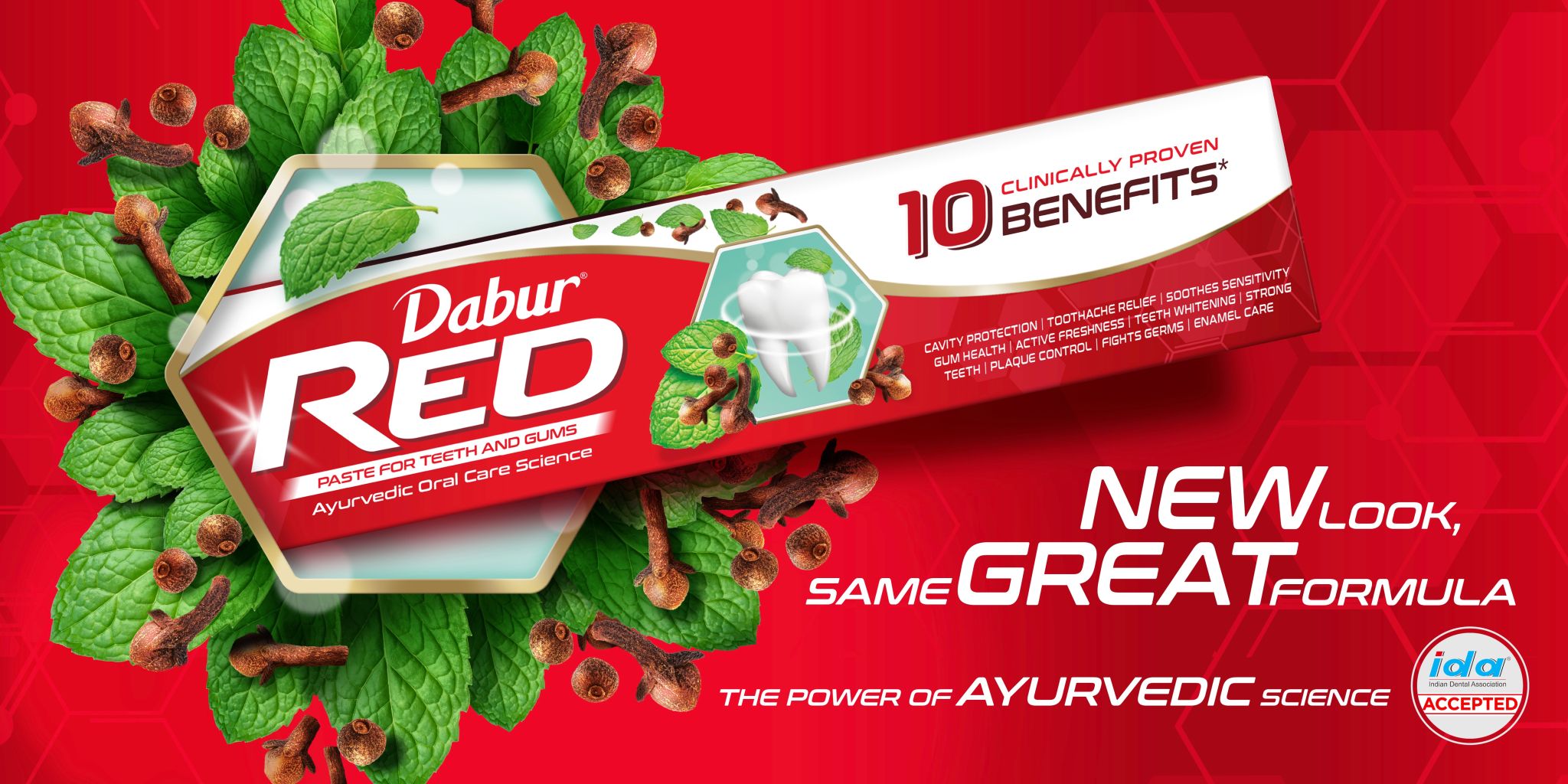 Renew Dabur Red’s mastery of oral care problems, projecting its natural ayurvedic powers, further strengthened by scientific advancements in clinical oral care efficacy.
